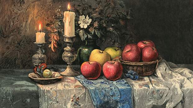Вместе с тем яблоки были неотъемлемой частью застолий. На праздничный стол всегда выставляли запеченные яблоки, блины с яблоками и другие блюда с этим ингредиентом.